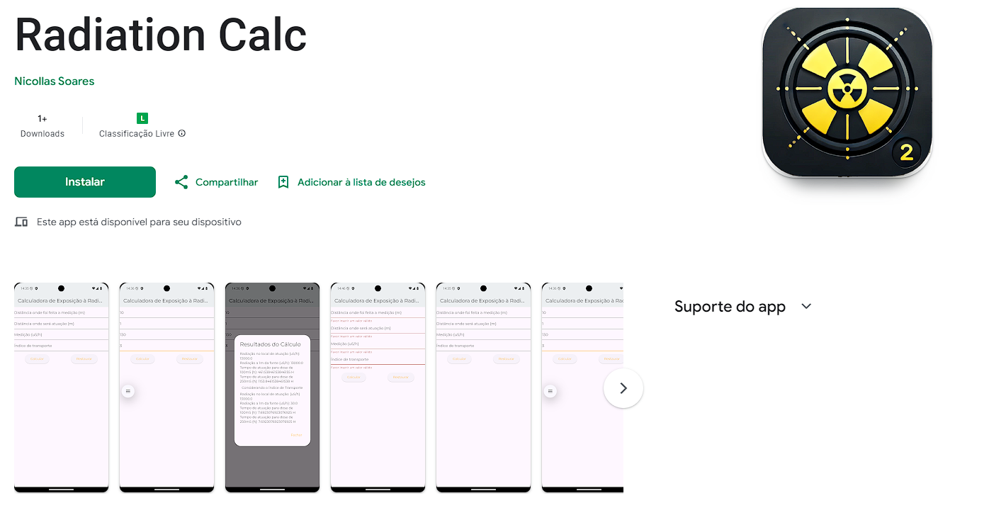 Um aplicativo já publicado que ajuda usuários a calcular doses de radiação, com foco em áreas técnicas e médicas.